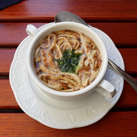 Die Suppe schmeckt am besten mit Frittaten, Griessnockerln oder Leberknödel.